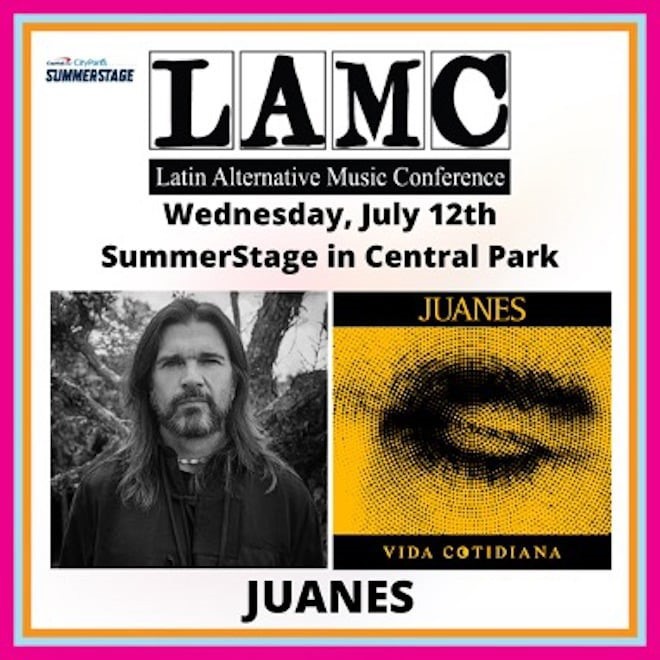 La Fundación de Parques de la Ciudad de Nueva York anunció que la super estrella del rock Latino JUANES ofrecerá su primer concierto gratuito en un festival neoyorquino el 12 de julio en el Capital One City Parks Foundation SummerStage, coincidiendo con el Latin Alternative Music Conference de este año. Juanes lleva mucho tiempo apoyando la LAMC, que ha sido apodada el “Sundance de la música latina”, como uno de los encuentros mundiales más importantes del género.